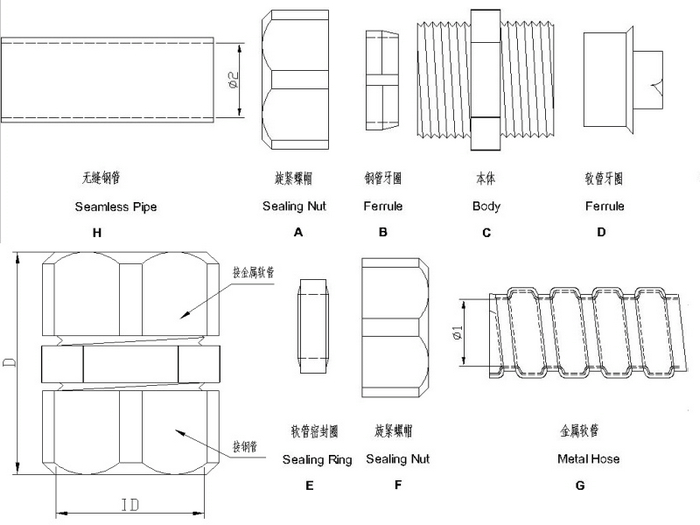 The order shall indicate the model of metal conduit and steel pipe. For example, JGJ-15-15B indicates that one end is connected with 15 metal conduit and the other end is 15 thick steel pipe. In addition, the model of round nut is provided. Please call for specific consultation |